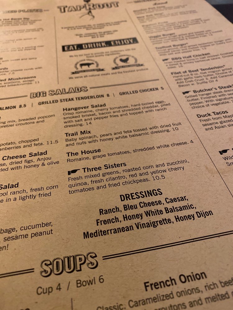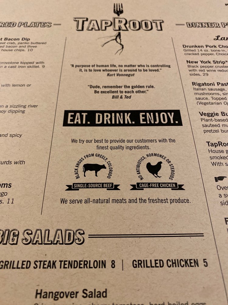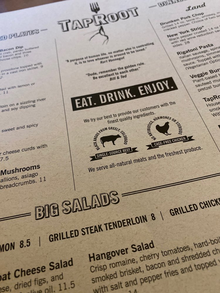 - Signature Dishes: Indulge in offerings like the Toasted Yardbird, featuring grilled chicken layered with crispy bacon and Asiago sauce, or the indulgent Taproot Burger made with single-sourced black Angus.